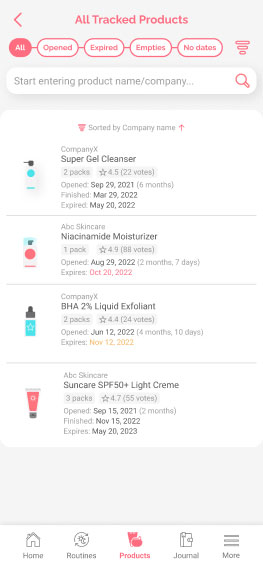 Track how long a product lasts and make sure you’re not applying the expired ones, learn about ingredients and their purpose.